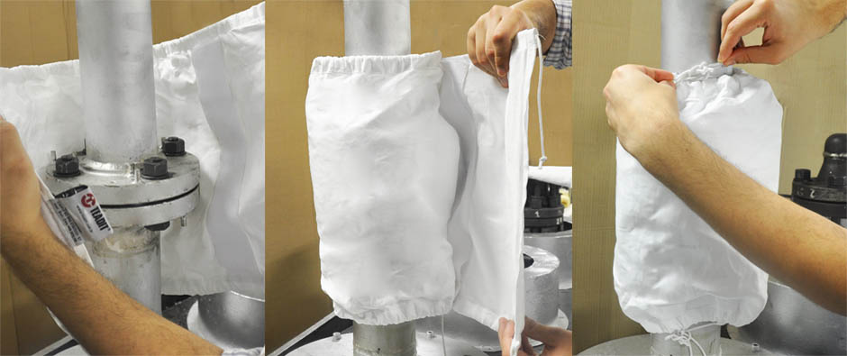 The Flange Protectors are made with fabric and strings of pure PTFE, ensuring their resistance to weathering, degrading of polymers, rubber, and chemical attack. This allows for re-use of the Flange Protector for a longer period of time. The closure system consisting of Velcro and laces allows the installation and removal to be quick and safe. Thus, protecting the environment and employees from accidents.